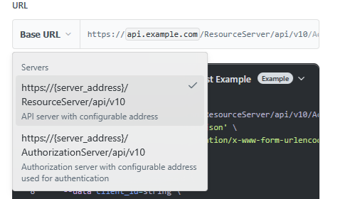 Select your desired URL to override the {server_address} variable. Do this for both the Resource and the Authorization Server.