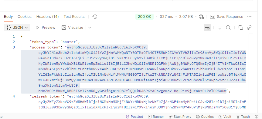 To save your token in Postman so that it can be used throughout your session, select the contents of the access_token property and copy it to your clipboard.